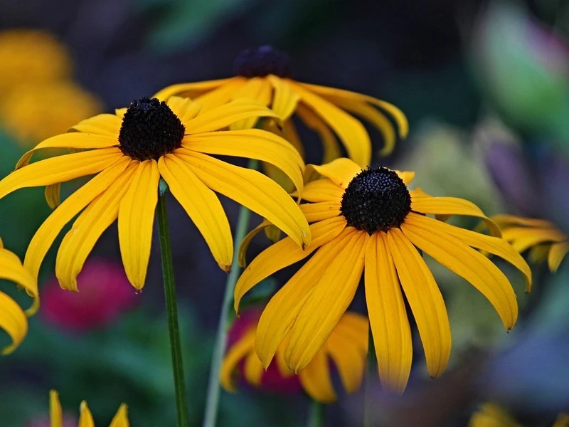 루드베키아의 학명은 Rudbeckia hirta L 입니다. 국화과로 다년생 또는 1~2년생 초화이며 개화 시기는 6~9월이라고 합니다. 여름에 피는 꽃이며 60~100cm 정도로 자라며 줄기와 잎은 털로 덮여 있으며 황금색의 꽃잎이 피며 중앙은 어두운 갈색으로 변합니다. 양지를 매우 좋아하는 꽃으로 하루 6시간 이상 직사광선이 필수라고 합니다. 배수가 잘되는 흙이 필요하며 너무 비옥하지 않아도 잘 자라는 종류의 꽃입니다. 뿌리가 취약하므로 너무 과한 물주기는 피하는 것이 좋습니다. 겉흙이 마르면 물을 주는 정도가 적합하며 지지대가 없이 잘 자라지만 바람이 많은 지역은 고정할 수 있는 지지대가 있으면 키우기 수월합니다. 시든 꽃은 제거하여야 더 오래 피며 자가 파종이 쉬워서 매년 스스로 자라기도 할 정도로 생명력이 강한 편입니다. 해충이나 병에 강하여 초보자도 잘 키울 수 있는 꽃이라고 합니다. 루드베키아와 비슷하게 생긴 꽃으로 해바라기, 코레옵시스, 에키나세아 등이 있는데 회사의 화단에 피어 있는 루드베키아를 보고 센터의 아이가 "선생님, 저 꽃은 이름이 뭐예요?"라고 물었을 때 "글쎄... 해바라기랑 비슷하게 생겨있네."라고만 답했는데 지금보니 그 꽃의 이름이 루드베키아라는 것을 깨닫습니다. 노란 꽃잎과 중심이 암갈색이라는 점은 유사하지만 해바라기가 꽃이 더 크고 한송이만 피며 줄기가 매우 두껍다는 점이 차이점입니다. 루드베키아는 black-eyed Susan(검은 눈동자의 수잔)’이라는 영어 이름으로도 널리 알려져 있습니다. 검은 눈동자의 수잔은 꽃의 중심부(디스크 플라워)가 짙은 갈색~검은색이기 때문에 붙은 표현으로 황금빛의 꽃잎과 어두운 암갈색의 중심부가 대비되면서 마치 검은 눈을 가진 누군가의 얼굴처럼 보인다고 하여 이름이 붙었음을 유추할 수 있습니다.