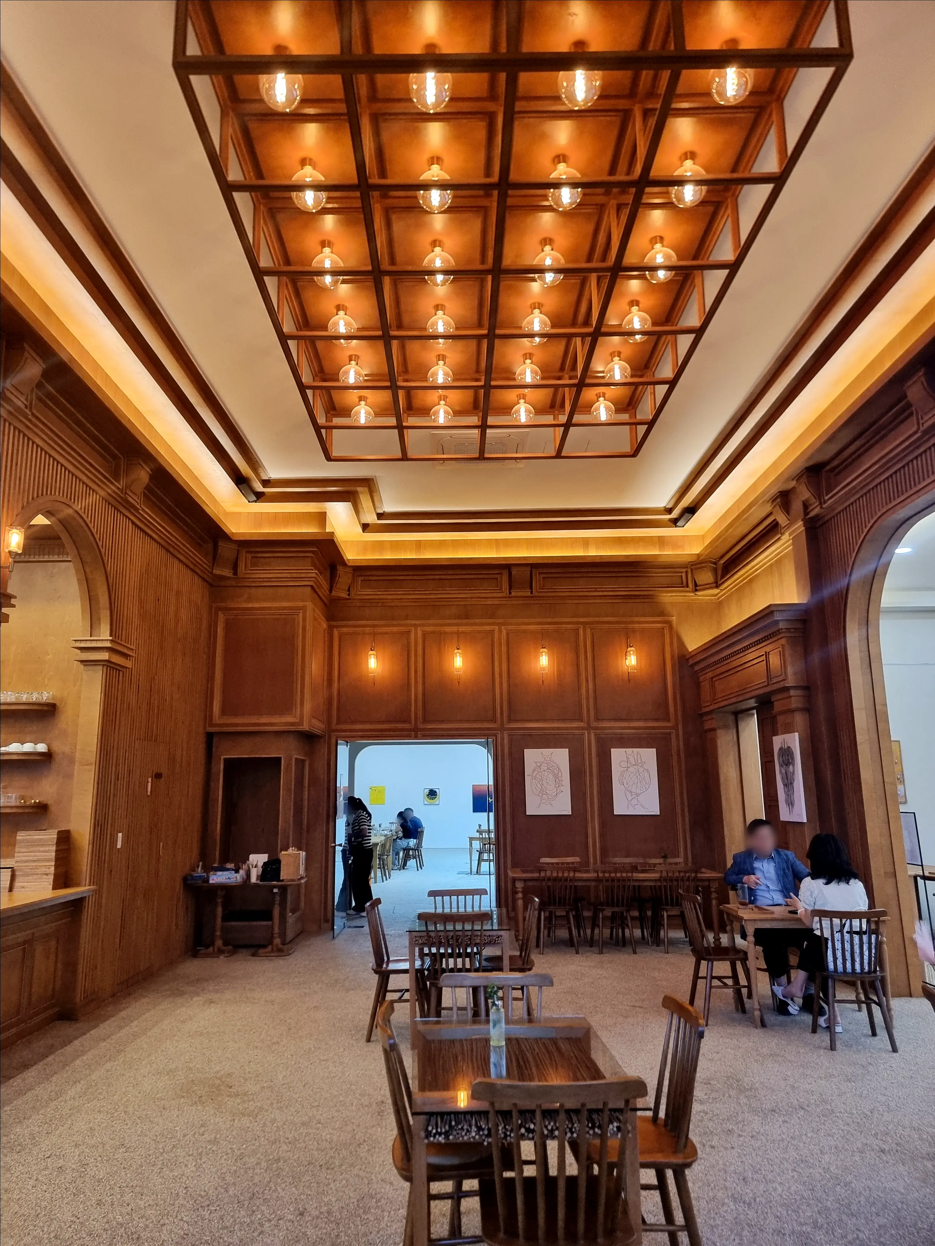 카페 입구부터 예술의 전당에 온 듯한 기분을 주는 곳이 바로 도슨트 카페였어요. 웅장하고 특색 있는 외관은 “여긴 뭔가 다르다”는 기대를 품게 만들었죠. 문을 열고 들어서면 따뜻한 우드톤 인테리어와 은은한 조명이 조화를 이루며, 고즈넉한 분위기를 만들어냅니다. 1년 만에 다시 찾은 이곳은 예전보다 정돈된 느낌이 강했고, 작은 변화들이 모여 더 편안하고 아늑한 공간으로 다가왔습니다. 음료를 마시는 재미뿐만 아니라, 공간 자체가 하나의 작품처럼 느껴지는 카페였어요.