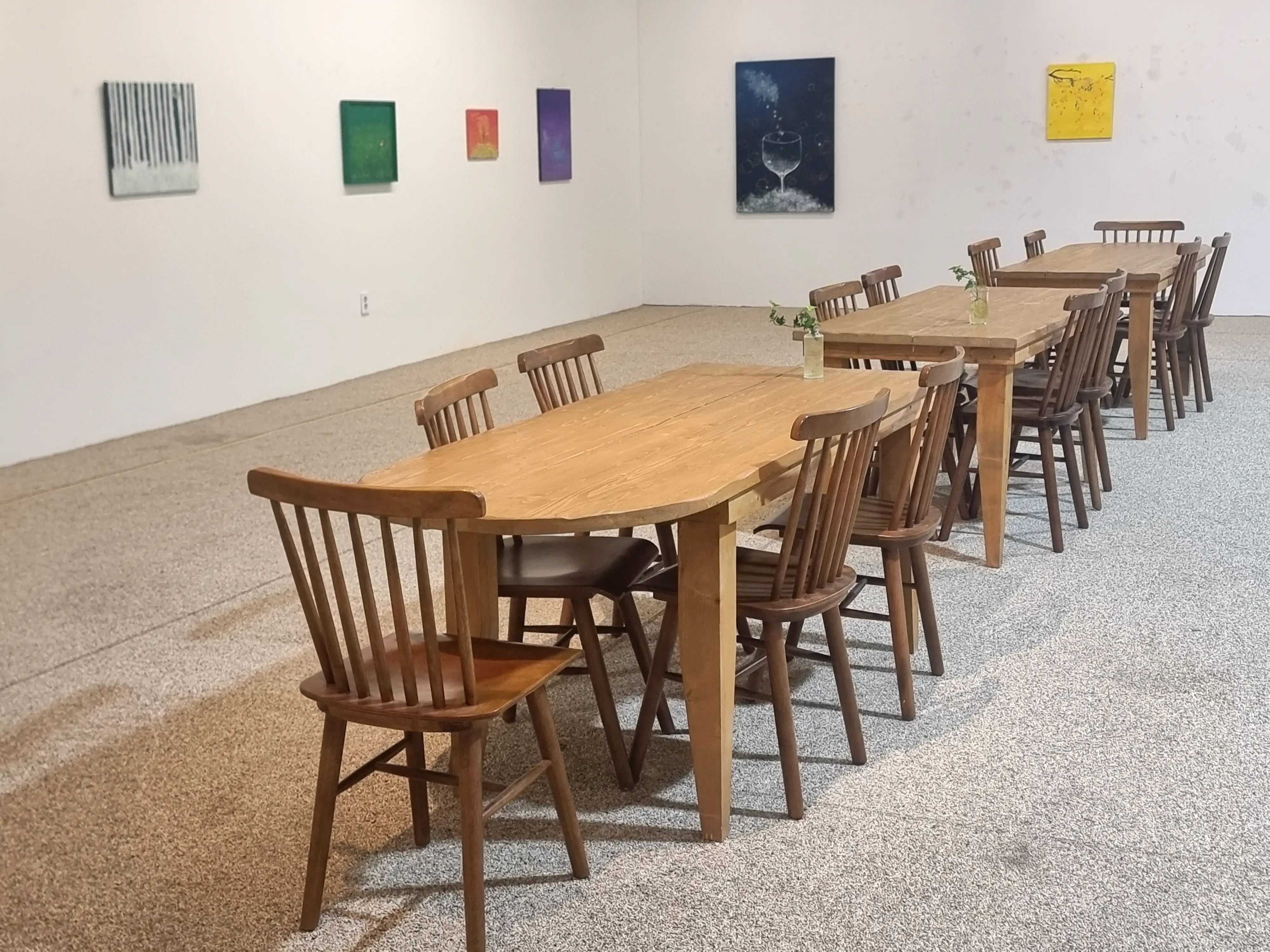 제가 방문했을 때 열리고 있던 전시는 “어른이도 온기가 필요해”라는 주제의 그림 전시였습니다. 동화 속에서 튀어나온 듯한 따뜻한 색감과 감성이 돋보이는 작품들이 걸려 있어서, 커피를 한 모금 마시며 예술 감상을 함께 즐길 수 있었죠. 전시 공간 벽면은 완전히 새것 같은 상태는 아니었지만, 1년만에 온것이니 나름 관리되고 있는 것 같았습니다. 다만 공간 환기가 조금 부족해 보이는 점은 아쉬움으로 남았어요.