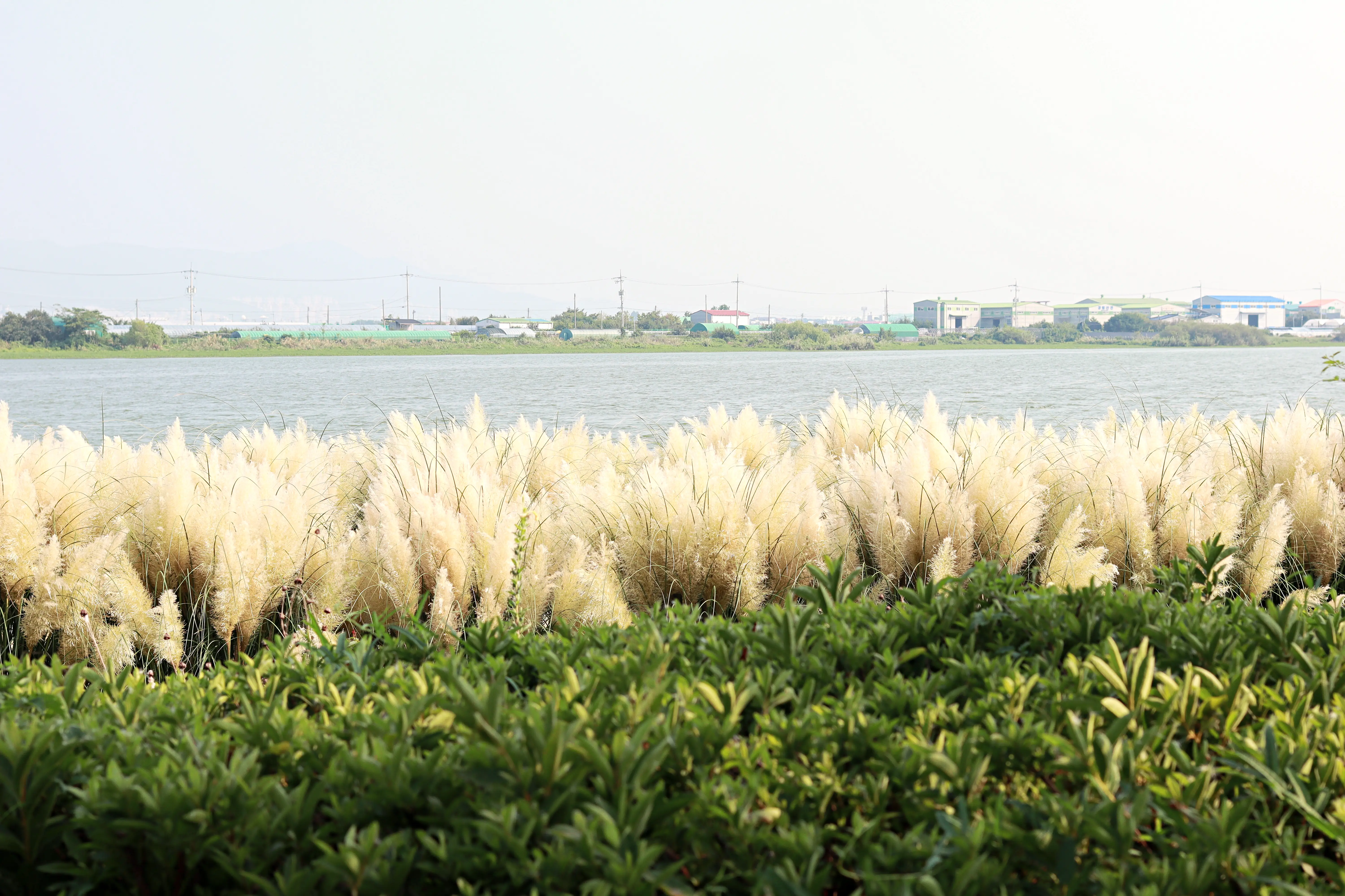 낙동강변을 따라 흐드러지게 피어난 팜파스는 생각보다 키가 크고 웅장해요. 따뜻한 아이보리 컬러가 눈앞에 펼쳐지면 편안한 기분이 들고, 바람이 불면 살랑살랑 흔들려 몽환적인 분위기를 자아냅니다. 특히 강바람이 불 때는 팜파스 물결이 일렁이며 강과 함께 어우러지는 풍경이 인상적이에요. 햇살 좋은 날에는 사진이 한층 더 따뜻하게 담겨, 사진 애호가들에게도 인기 있는 장소랍니다.