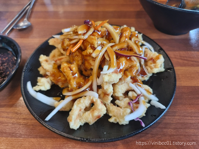 탕수육(소) 가격은 13,000원. 겉은 바삭하고 속은 촉촉한 딱 기본기 탄탄한 탕수육이었어요. 특별한 변주 없이 우리가 잘 아는 그 맛인데, 오히려 그래서 더 맛있게 느껴졌습니다. “기본이 가장 맛있게 느껴지는 집이 진짜 잘하는 집”이라는 말이 딱 어울리는 느낌이었어요. 먹는 동안 포장 주문이 끊이지 않는 걸 보니, 단골들이 탕수육은 꼭 챙겨가는 것 같더라고요.