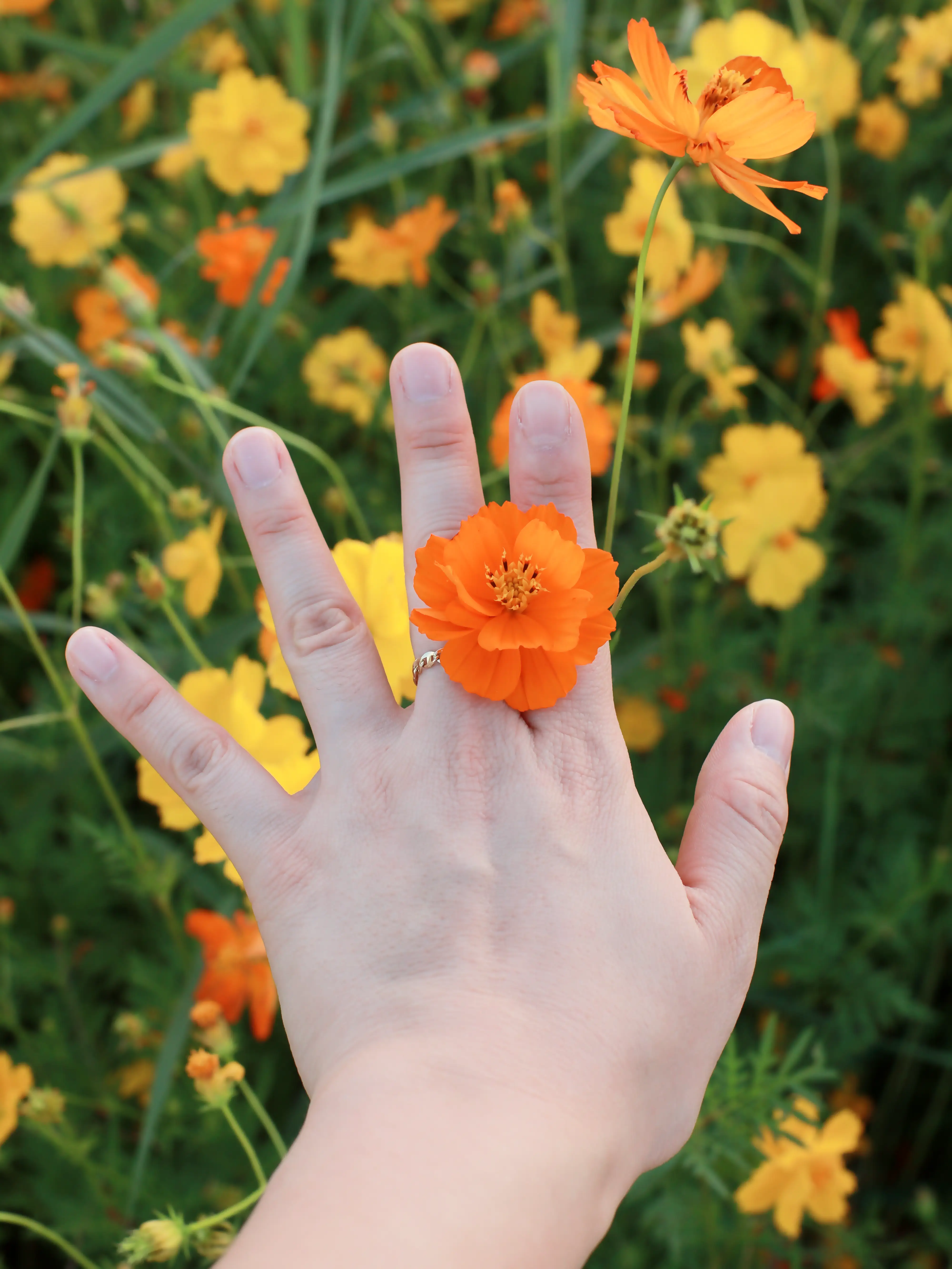 2023년 10월, 양산 황산공원에서 만난 황화코스모스. 노란빛으로 물든 가을 풍경 속에서 손바닥 위에 올린 한 송이가 계절을 기억하게 합니다.