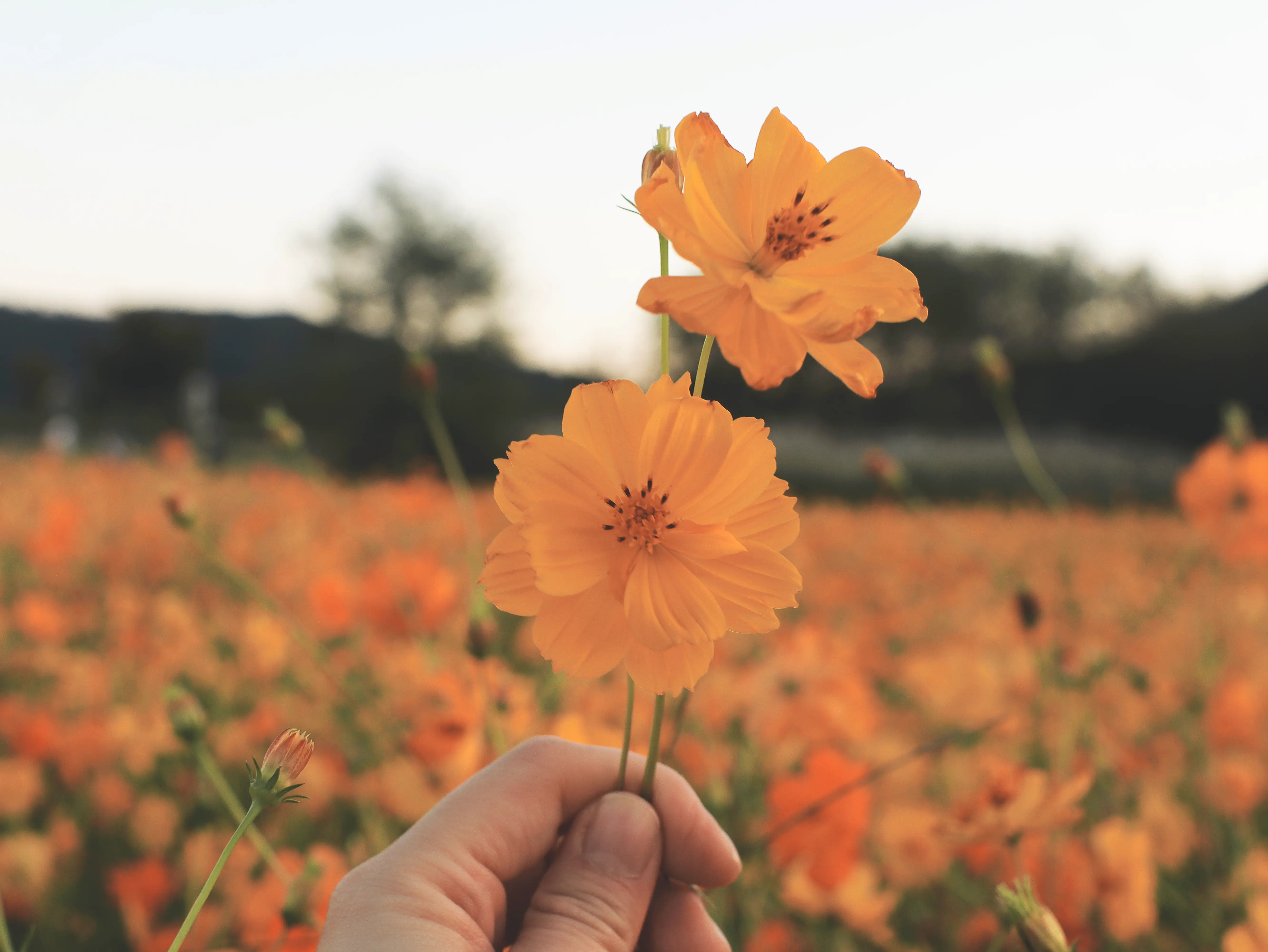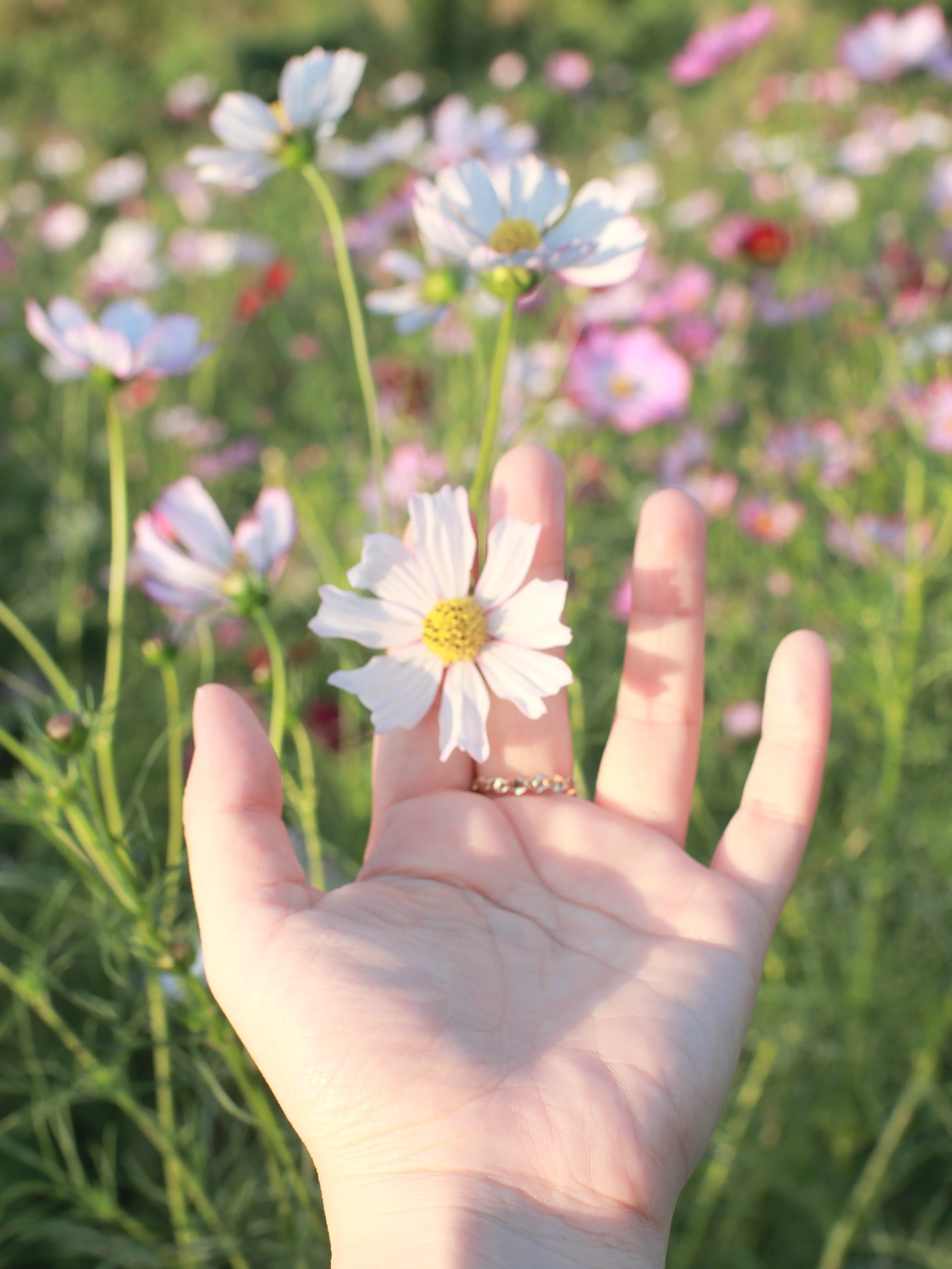 2023년 10월, 양산 황산공원에서 만난 황화코스모스. 노란빛으로 물든 가을 풍경 속에서 손바닥 위에 올린 한 송이가 계절을 기억하게 합니다.