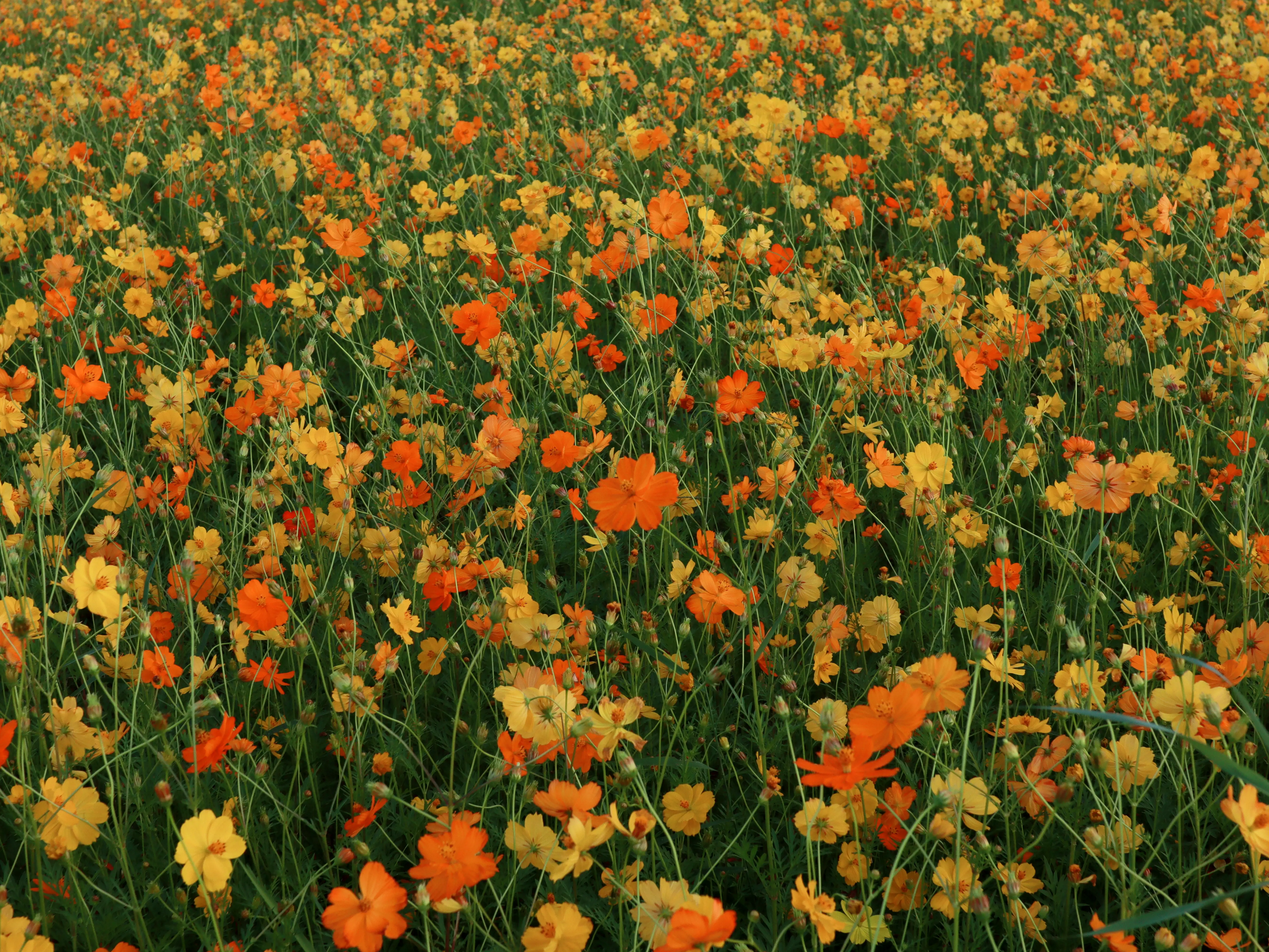코스모스는 보통 7월부터 10월 사이에 꽃을 피웁니다. 그중 황화코스모스는 9월 말에서 10월 초에 절정을 맞이하여, 짧지만 선명한 빛깔로 가을을 알립니다. 서리가 내리기 전까지 이어지는 이 시기는 더욱 소중하게 다가옵니다. 황산공원에서 마주한 황화코스모스는 계절의 전환점을 기억 속에 고이 남겨주는 한 장면이었습니다.