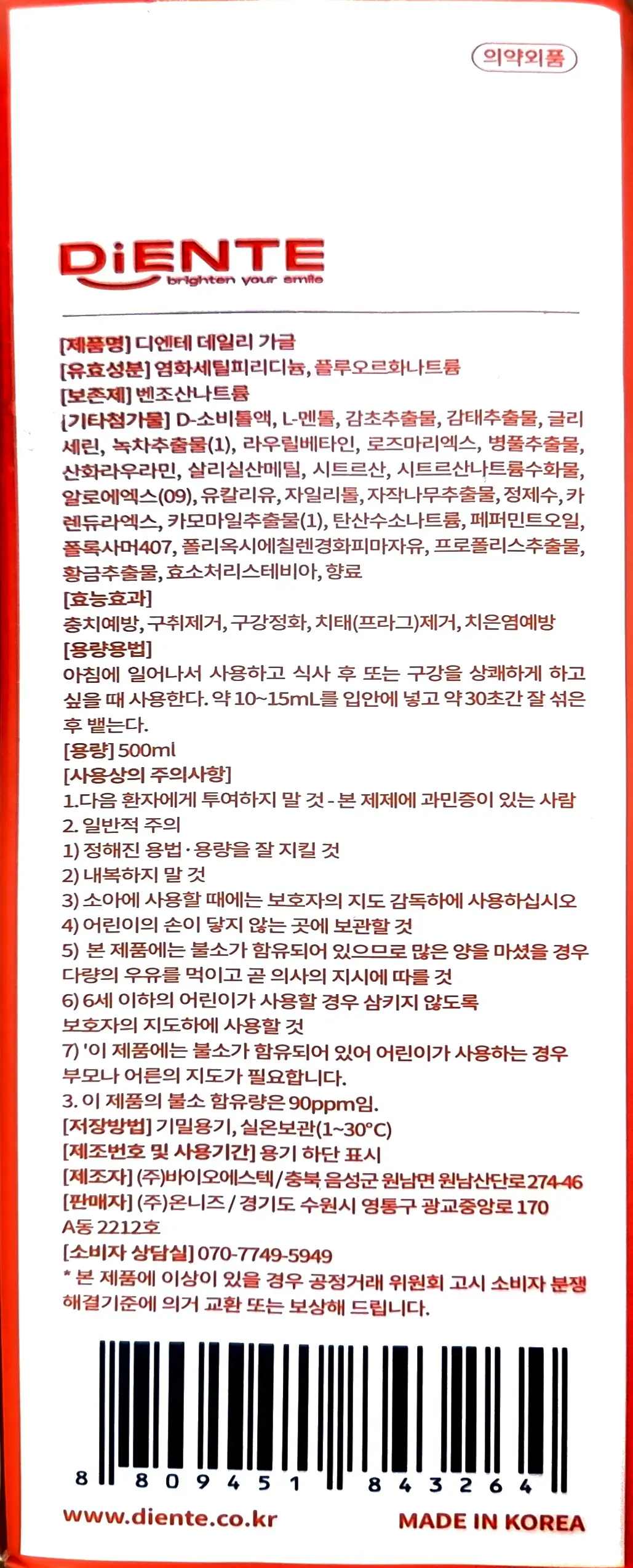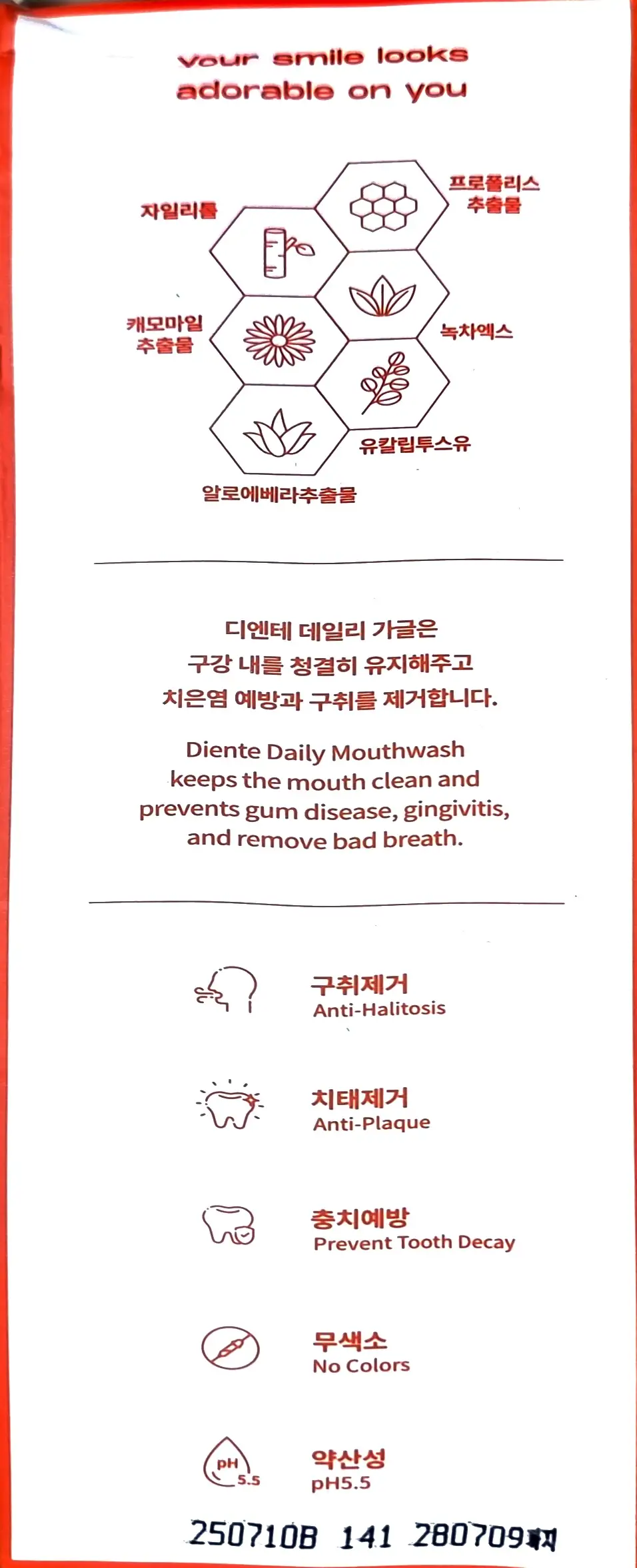 궁금증이 생겨 직접 구매한 제품이 바로 디엔테 데일리 가글(Diente Daily Mouthwash)이에요.